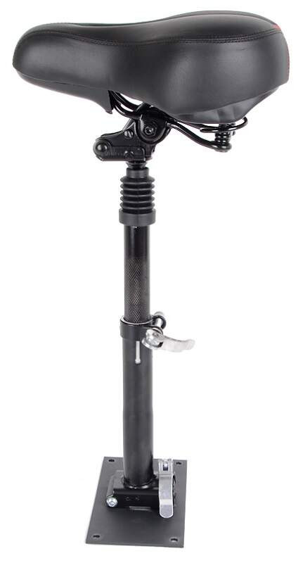 La trottinette est préfabriquée pour le montage de la selle, il y a 4 trous dans le cadre. La selle ne vous limite pas lorsque vous manipulez la trottinette, elle est pliable et sa hauteur est également ajustable. Une fois la hauteur souhaitée réglée, fixez la tige de selle à l'aide de la vis de fixation rapide. La selle est souple, résistante et amortie. Le poids de l'ensemble est de 2,3 kg.