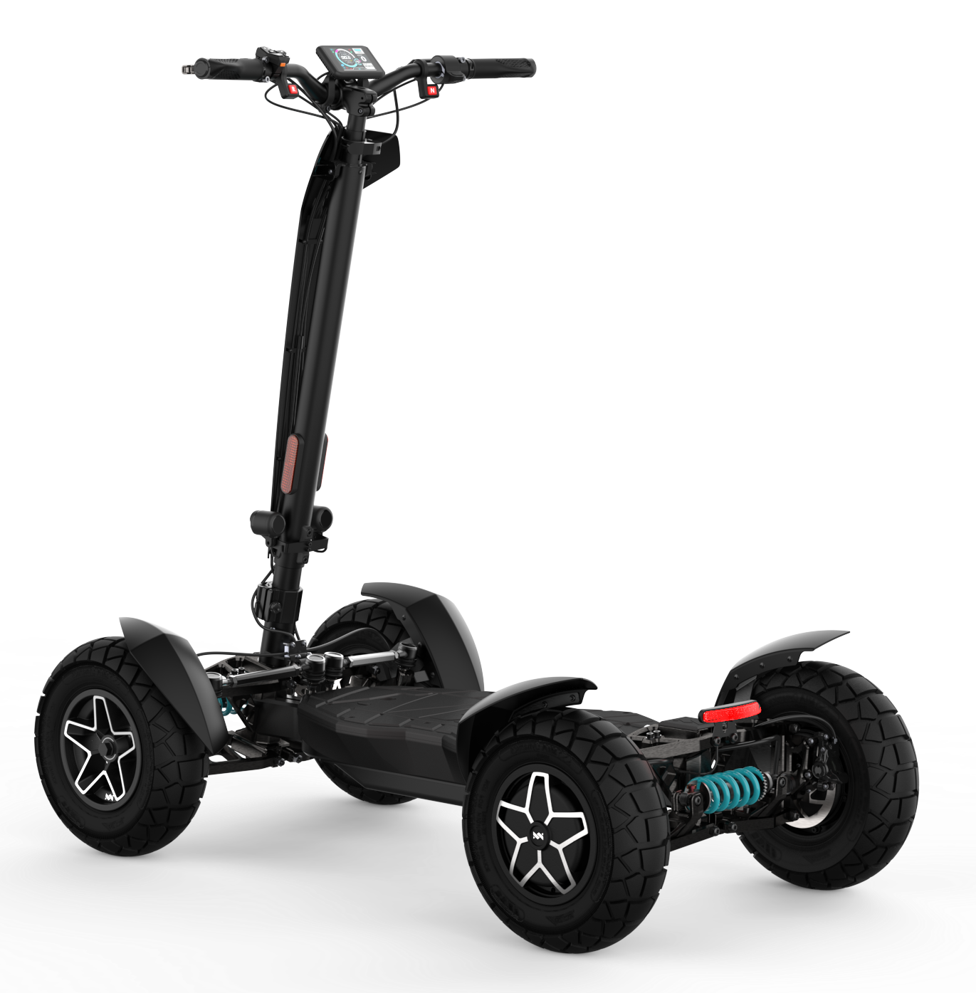 Par rapport aux autres modèles de la marque MIA Dynamics, le MIA FOUR X2 représente le compromis idéal entre performance, autonomie et prix. Comparé au modèle plus puissant MIA FOUR X4 (4x4), il offre un poids inférieur, un entretien plus simple et une consommation d’énergie plus efficace, tout en conservant un haut niveau de performance et de vitesse. Le modèle X4 est principalement destiné aux terrains extrêmes, tandis que le X2 constitue un choix plus polyvalent pour un usage urbain et récréatif. Par rapport aux modèles plus petits ou moins puissants de la gamme, le X2 offre une stabilité, une puissance et une capacité de charge nettement supérieures. C’est le choix idéal pour les riders qui souhaitent plus qu’une trottinette classique, sans pour autant avoir besoin d’une transmission intégrale 4x4. Le MIA FOUR X2 est la voie médiane parfaite – puissant, sûr et pratique.