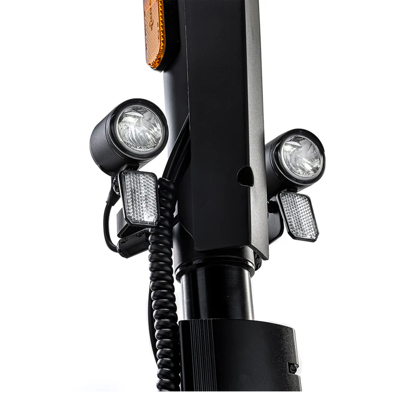 Avec une vitesse pouvant atteindre 72 km/h et une puissance de 7200 W, la sécurité est absolument essentielle. Le MIA Four X4 combine stabilité mécanique et protection électronique. Le cadre rigide, à centre de gravité bas et position large, réduit le risque de renversement, tandis que les freins hydrauliques et la suspension indépendante assurent un contact fluide des roues avec la route, même en cas de freinage brusque. La trottinette est équipée de lumières LED avant et arrière, de clignotants et d’un feu stop, ce qui améliore la visibilité lors des trajets de nuit. L’électronique comprend des protections contre la surchauffe, la décharge excessive et les courts-circuits. Le système de gestion de puissance limite automatiquement l’accélération si les capteurs détectent un angle d’inclinaison dangereux. Les pneus de 14,5 pouces offrent une excellente adhérence, tandis que la largeur totale (689 mm) assure une posture stable du conducteur. Avec une charge maximale de 150 kg, cette trottinette convient à la plupart des adultes sans compromettre le confort. Les éléments de sécurité incluent des bandes réfléchissantes et une coupure automatique du moteur lors du freinage – un standard dans la catégorie premium des véhicules électriques.