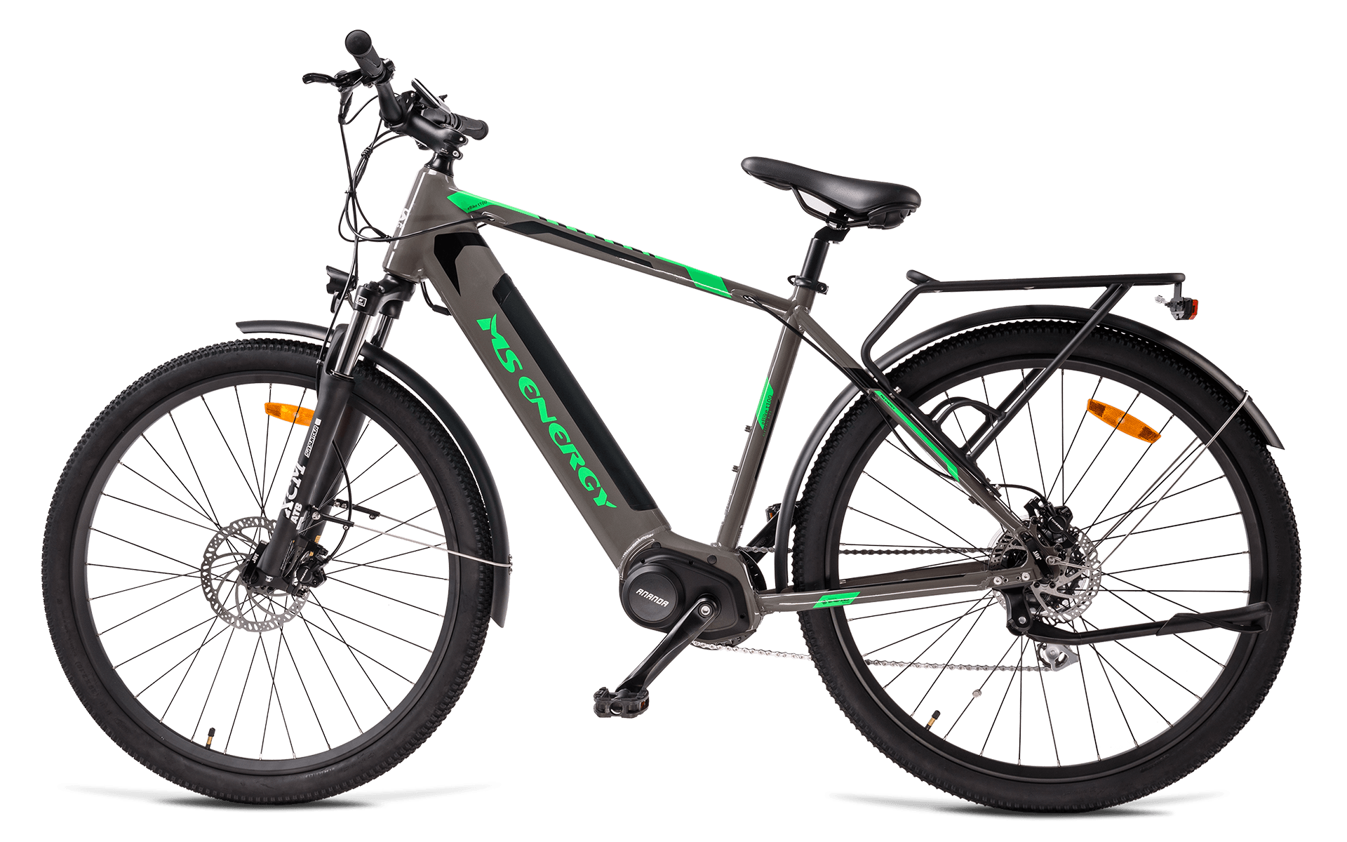 Le vélo électrique MS ENERGY eBike t100 est un modèle de trekking équipé d'un moteur central Ananda M81 de 250 W avec un couple de 80 Nm, d'un dérailleur Shimano Acera à 8 vitesses et d'une batterie de 540 Wh qui permet une autonomie de 130 km.