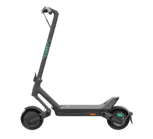 Egret Ey! 1 est une trottinette électrique urbaine premium avec une puissance de 500 W et une puissance de pointe jusqu’à 1 512 W, une autonomie jusqu’à 65 km, une suspension robuste avec un débattement de 61 mm, un système de freinage triple et une charge maximale de 120 kg. Grâce à son équipement avancé, ses éclairages DEL de qualité, ses pneus tubeless de 10" et sa batterie 46,8 V / 14,5 Ah (678 Wh), elle offre confort, sécurité et fiabilité au quotidien.