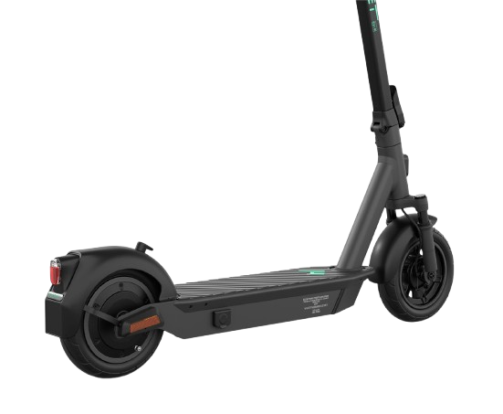 Trottinette urbaine premium avec une puissance de 450 W / 902 W en pointe, une batterie 36 V / 15,3 Ah / 550,8 Wh, une autonomie de 55 km, un triple système de freinage, des pneus tubeless de 10", une protection IPX5/67 et un éclairage LED haut de gamme.