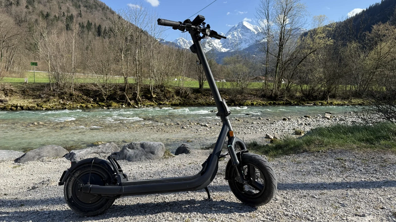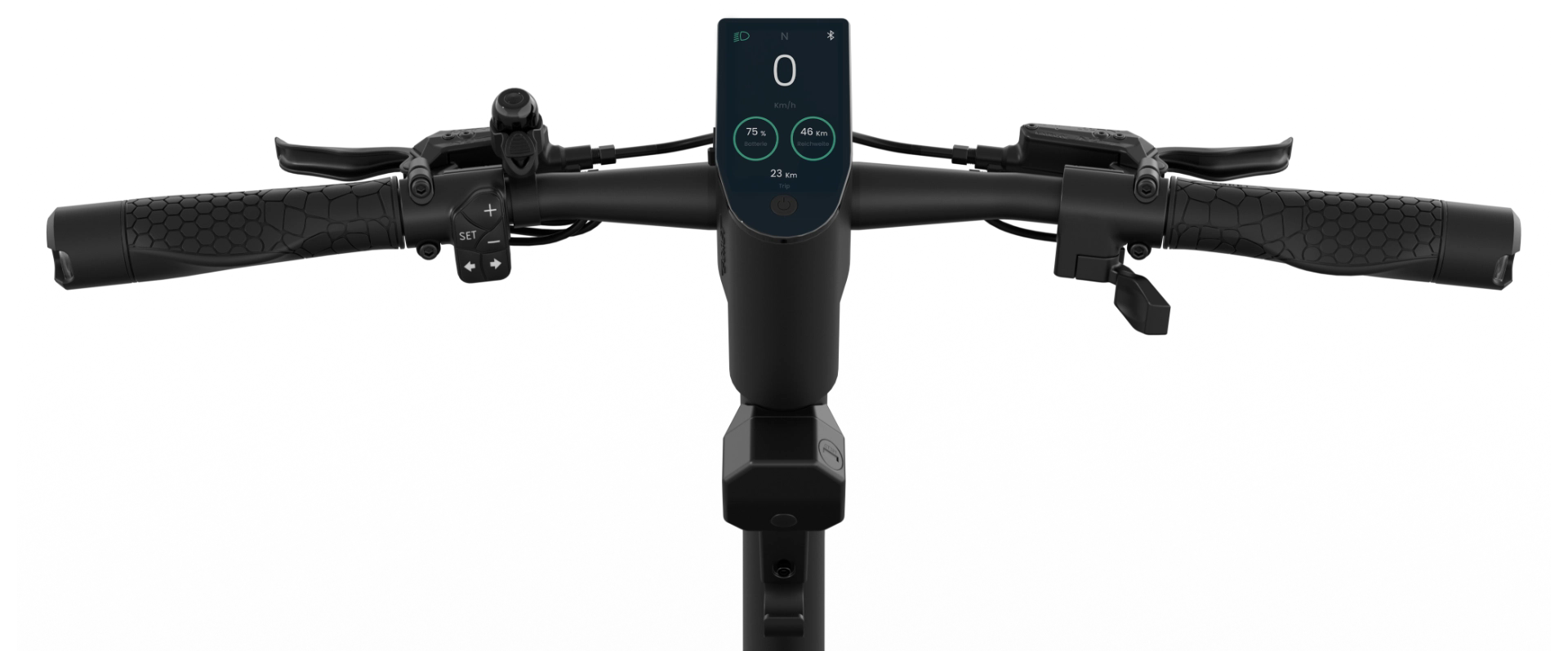 L’Egret GT se distingue par un design robuste tout en restant moderne. En position dépliée, ses dimensions sont de 136 × 67 × 128 cm, et une fois pliée, seulement 136 × 60 cm, ce qui facilite considérablement la manipulation et le rangement. Le deck, aux dimensions généreuses 17 × 46 cm, offre une position stable et dissimule en même temps une batterie interchangeable rapidement, l’une des fonctionnalités les plus pratiques de ce modèle. La double suspension – fourche avant inversée RST à huile avec un débattement de 5 cm et amortisseur arrière réglable – assure un confort même sur les surfaces irrégulières. La trottinette est équipée de pneus de 13" avec protection anti-crevaison en acier, ce qui renforce la stabilité à des vitesses plus élevées. L’éclairage est premium : LED avant OSRAM 80 lux, LED arrière avec effet de freinage, et clignotants intégrés à l’avant et à l’arrière. La commande est complétée par un écran TFT de 3,5", qui affiche clairement la vitesse, la capacité de la batterie, le mode de conduite ou encore les clignotants. Parmi les fonctionnalités utiles figurent également le déverrouillage NFC, une alarme électronique, un immobilizer et la compatibilité avec Apple Find My, réduisant considérablement le risque de vol. L’étanchéité IPX5 de la trottinette et IPX7 de la batterie complète la résistance exceptionnelle de l’ensemble du système.