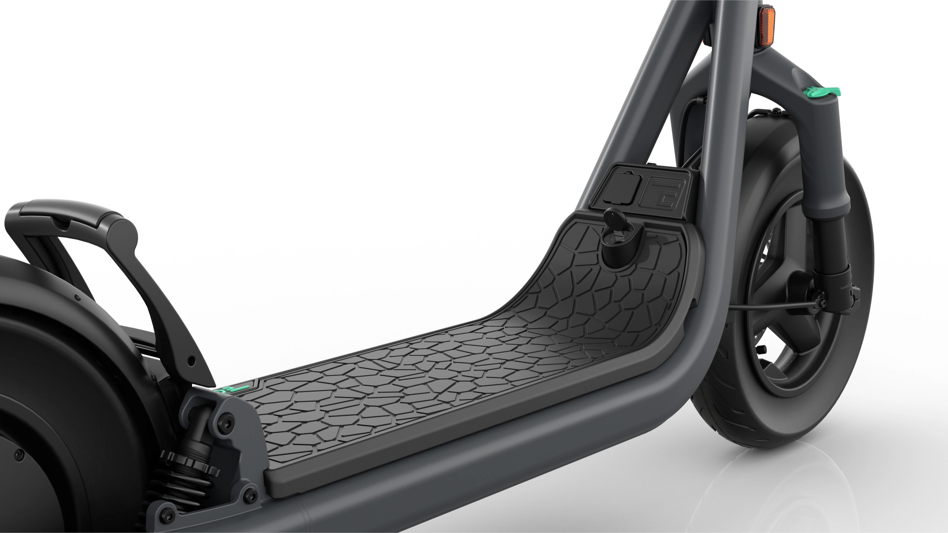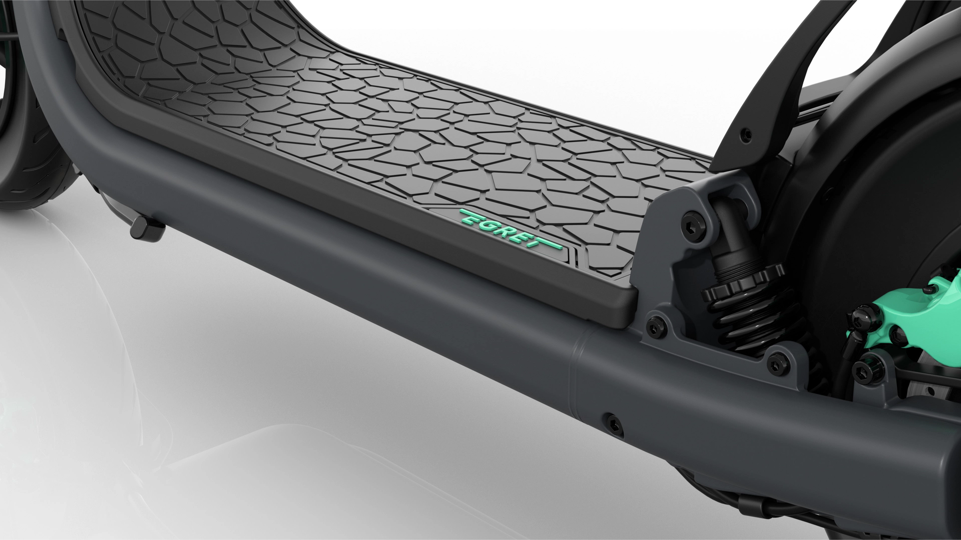 L’Egret GT est propulsée par un moteur avec une puissance maximale de 1 620 W, offrant une accélération impressionnante et une conduite stable même sur terrain plus exigeant ou avec une charge plus élevée. Le couple de 62 Nm garantit une forte traction en côte et une réponse rapide aux commandes du rider. La batterie située sous le deck a une capacité de 15 Ah ou 20 Ah à une tension de 47,45 V, ce qui permet une autonomie de 75 km avec la petite batterie et jusqu’à 100 km avec la grande. La recharge ne prend que 5 heures via un chargeur 3 A, ce qui est idéal pour une utilisation quotidienne. Grâce aux pneus de 13" et à la double suspension – RST avant avec débattement de 5 cm et amortisseur arrière réglable – la conduite est confortable même à des vitesses plus élevées. Les performances restent entièrement sous le contrôle du rider grâce à l’excellent écran TFT de 3,5", qui affiche toutes les informations nécessaires pour une conduite sûre et fluide.