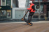 Le prix international Red dot design award en dit beaucoup. Non seulement les amateurs mais aussi un jury d'experts considèrent le design de cette trottinette comme l'un des meilleurs au monde. Elle est tout simplement magnifique et en même temps différente de toutes les autres trottinettes de cette catégorie de performance, qui se ressemblent comme deux gouttes d'eau. Le montage asymétrique des roues est sans aucun doute l'une des principales caractéristiques de conception qui donne à la trottinette un aspect différent de chaque côté. D'un côté, vous verrez un beau bras oscillant qui tient la roue, et de l'autre côté, les roues ont l'air de n'être retenues par rien sur la trottinette. La barre de direction a une belle forme aérodynamique et donne une impression de robustesse. L'OX ECO n'est disponible que dans une combinaison exclusive de noir et d'orange, qui rappelle la marque KTM, un peu plus connue des motocyclistes. L'OX ECO a des poignées noires au lieu des poignées orange du modèle OXO, et celles-ci sont en mousse plutôt qu'en caoutchouc, mais elles sont toujours aussi belles et confortables au toucher. L'OX ECO possède également des conduites de frein et d'autres câbles assez bien camouflés qui ne nuisent pas à l'impression générale de cette machine au design unique. L'association du noir et de l'orange convient parfaitement à ce design, à la fois agressif et luxueux. L'ECO a l'air d'une trottinette deux fois plus chère.