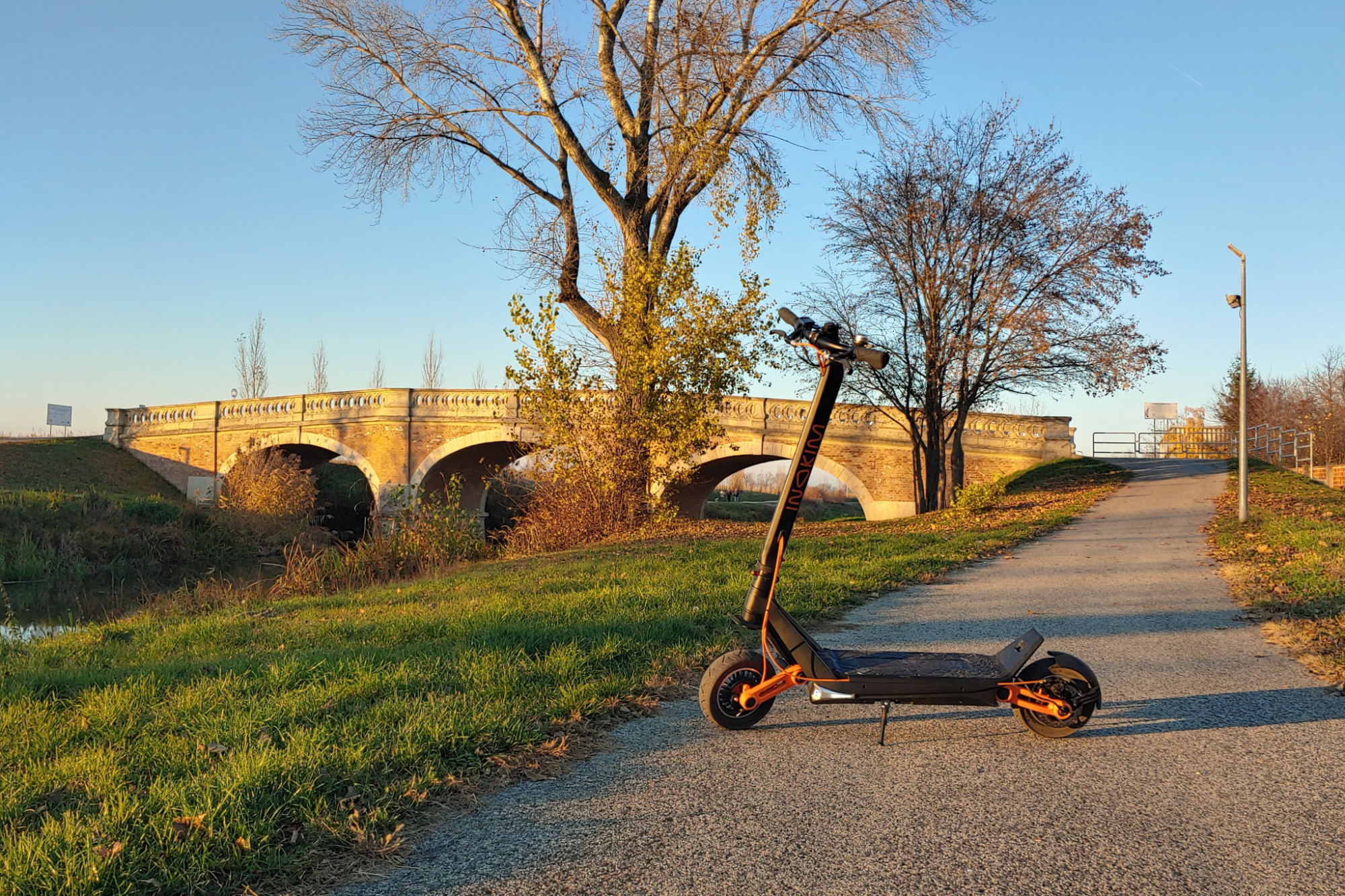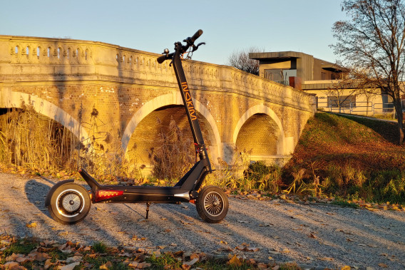Son design et ses performances en font l'une des trottinettes les plus versatiles au monde. Grâce à ses deux roues motrices, elle ne dédaigne pas le terrain ni les pentes raides. En ville, vous apprécierez ses performances en montée et son autonomie, de sorte que vous n'aurez pas à vous inquiéter si vous devez prendre un itinéraire plus long ou si vous n'avez pas le temps de la recharger pendant la journée. Vous allez adorer le châssis très confortable, que vous utiliserez aussi bien sur un chemin de terre que sur nos routes défoncées. Malgré sa polyvalence, ce n'est pas la solution la plus pratique pour la ville. Vous devez compter sur un poids d'environ 33 kg, et les escaliers que vous aurez à monter ne vous feront certainement pas plaisir. De plus, vu sa taille, vous ne pourrez plus simplement la plier et l'emmener au restaurant, mais vous devrez l'enfermer à l'extérieur comme un vélo. Son poids peut encore être soulevé par une personne sans trop d'effort et la transporter sur une courte distance n'est pas un problème, mais la transporter dans un escalier au quatrième étage n'est pas quelque chose que vous voudriez faire (nous l'avons essayé). Vous pouvez la faire entrer dans le coffre d'une voiture ordinaire, mais il ne vous restera pas beaucoup de place. Si vous voulez l'emmener avec vous lors d'un long voyage en voiture (au bord de la mer, par exemple), un porte-vélos arrière sur une barre de remorquage vous sera plus utile, car il vous laissera un coffre libre. Outre son poids plus élevé, c'est une solution fantastique pour la ville, mais aussi en dehors.