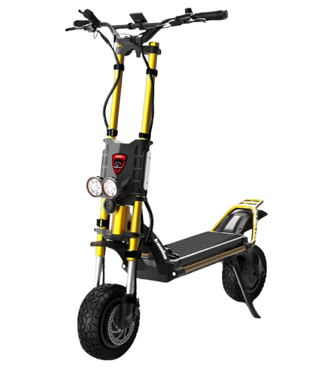 La KAABO Wolf King GTR est une trottinette électrique qui repousse les limites de la puissance et de la technologie à un niveau totalement nouveau. Ce modèle est conçu pour les pilotes à la recherche d’une expérience de conduite haut de gamme, d’un confort maximal et de performances extrêmes combinées aux fonctionnalités les plus modernes. Avec ses moteurs doubles de 2000 W facilement démontables, elle offre une puissance inégalée et une flexibilité pour l’entretien. La vitesse maximale atteint 105 km/h, c’est donc l’une des trottinettes électriques de série les plus rapides au monde. Grâce à sa batterie massive de 2419 Wh (LG INR21700-M50, certifiée UL-2271), elle peut parcourir jusqu’à 180 km avec une seule charge, permettant de longues distances sans rechargement fréquent. La Wolf King GTR peut également gravir des pentes jusqu’à 50°, gérant facilement même les collines raides. Sa structure robuste, pesant environ 63 kg, assure la stabilité même à grande vitesse, tandis que la suspension avancée et l’équipement premium font de cette trottinette le véritable roi de la route et du tout-terrain.