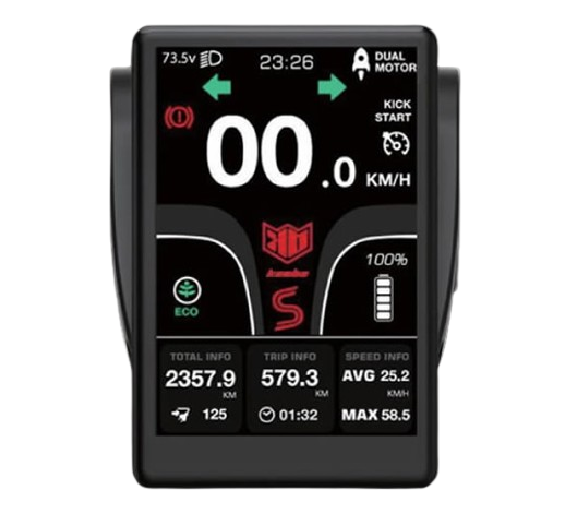 Le design de la KAABO Wolf King GTR est basé sur la robustesse, la stabilité et le confort. La trottinette utilise des pneus spéciaux CST Vacuum All-Terrain 100-55-7 auto-réparants, ce qui réduit considérablement le risque de crevaison et augmente la fiabilité même dans des conditions difficiles. À l’avant, elle est équipée d’amortisseurs hydrauliques et à l’arrière d’un système ressort-huile avec jusqu’à 18 réglages, permettant d’adapter les caractéristiques de conduite au terrain et aux préférences du pilote. Pour le contrôle, un écran TFT clair et intuitif est disponible, affichant toutes les informations clés sur la vitesse, l’autonomie, l’état de la batterie et les modes de conduite. La Wolf King GTR offre également des fonctions intelligentes – contrôleur 2-en-1 FOC pour une réponse plus précise et un refroidissement efficace, ainsi que plusieurs modes de conduite : Sport pour une puissance maximale, ESP pour une stabilité accrue, Pedestrian pour les déplacements lents dans les zones piétonnes, Anti-theft pour la protection contre le vol et Auto Memory, qui mémorise les derniers réglages. La batterie dispose d’une fonction de veille automatique après 7 jours d’inactivité, économisant de l’énergie et prolongeant sa durée de vie.