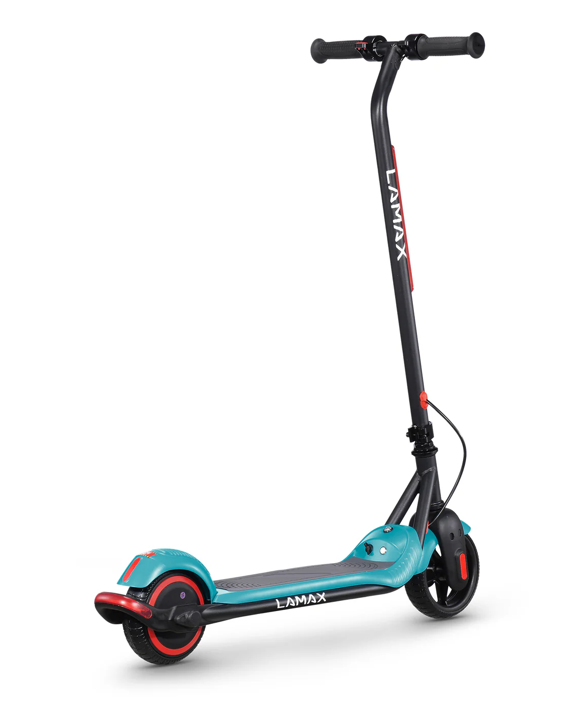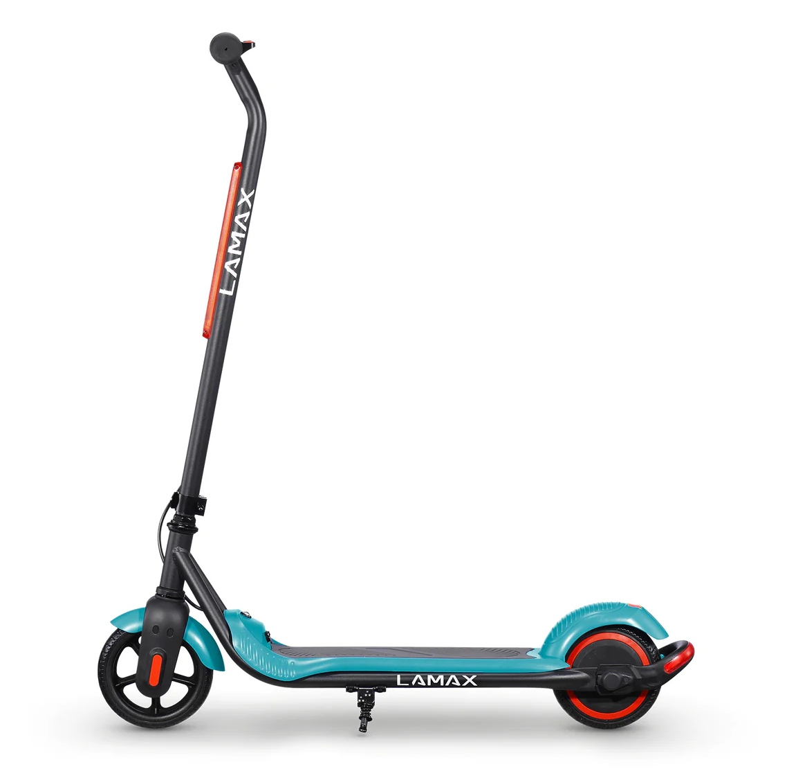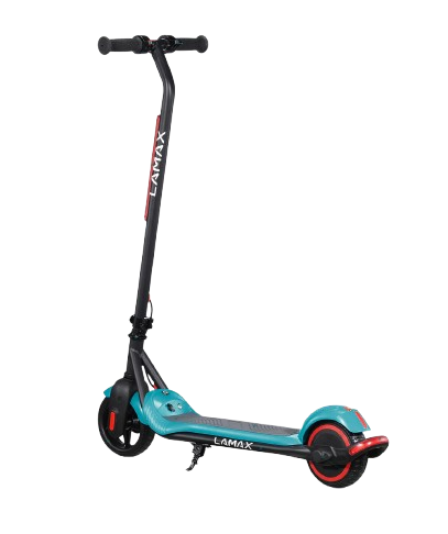 Trottinette électrique pour enfants LAMAX eFlash SC20 avec une puissance de 150 W, une vitesse maximale de 15 km/h, une autonomie de 15 km et une capacité de charge de 60 kg. Légère, sûre et équipée d’un éclairage LED.