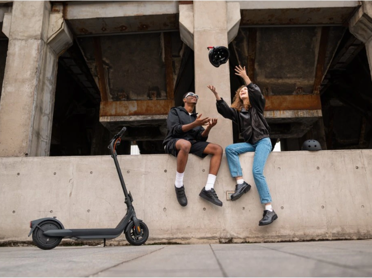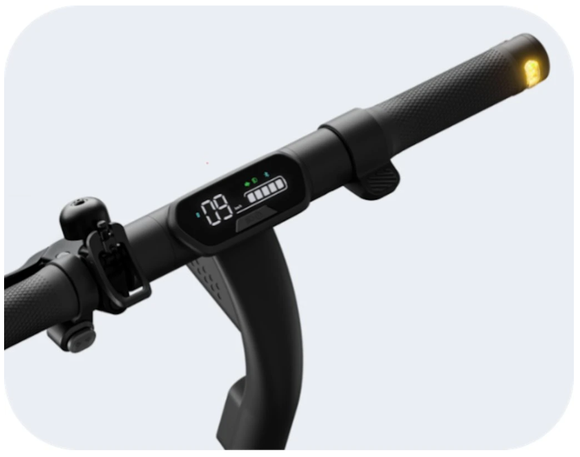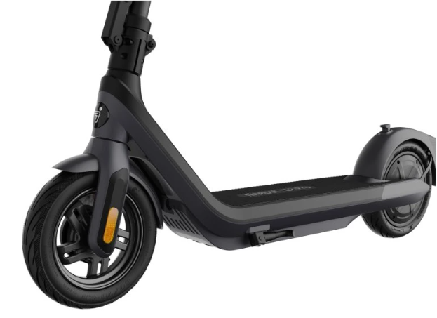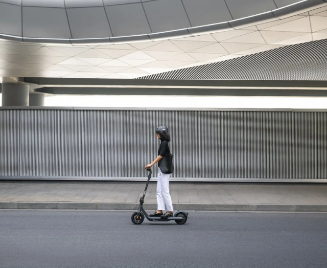 Le design de la Ninebot KickScooter E2 Pro E s’inspire du minimalisme moderne, combinant lignes élégantes, fonctionnalité et accent sur la durabilité. En position dépliée, la trottinette mesure 1168 × 540 × 1220 mm, offrant une position de conduite stable même pour les utilisateurs de grande taille. Une fois pliée, ses dimensions sont réduites à 1168 × 538 × 565 mm, ce qui la rend facile à transporter en voiture, dans les transports en commun ou à ranger au bureau. Son poids total de 18,8 kg est relativement élevé au sein de la gamme E2, mais il garantit un cadre robuste, une meilleure stabilité à haute vitesse et une transmission plus efficace de la puissance du moteur arrière. Un élément marquant du design est le grand écran DEL de 2,8", clair et lisible, qui affiche la vitesse, l’état de la batterie, le mode de conduite et les fonctions actives. L’équipement se distingue notamment par les clignotants intégrés à l’avant et à l’arrière, encore rares dans cette catégorie et extrêmement bénéfiques pour la sécurité. Le phare DEL avant de 2,1 W offre une portée lumineuse allant jusqu’à 13,5 mètres, assurant une excellente visibilité lors des déplacements nocturnes. Le feu arrière réagit automatiquement au freinage. La trottinette est équipée de pneus tubeless de 10", qui améliorent nettement le confort par rapport à des roues plus petites tout en conservant une grande résistance aux crevaisons. Un atout majeur est le TCS – système de contrôle de traction, qui empêche le patinage des roues sur les surfaces humides ou meubles, améliorant considérablement la sécurité et la stabilité de conduite. L’E2 Pro E prend également en charge la connexion Bluetooth avec une application mobile, permettant de surveiller l’état de la batterie, de mettre à jour le firmware et d’activer des fonctions de sécurité.