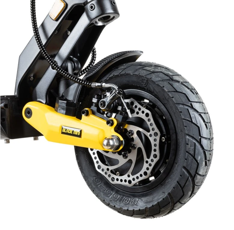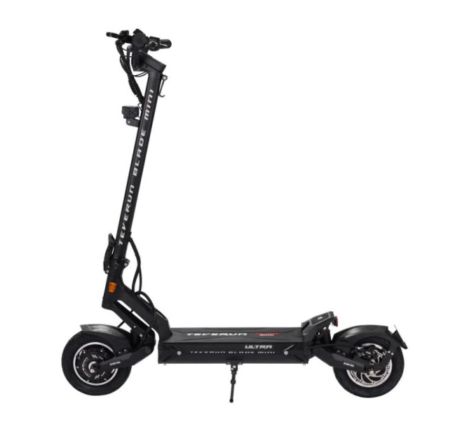 La trottinette électrique urbaine performante Teverun Blade Mini Ultra avec deux moteurs de 1 000 W (pointe jusqu'à 2 400 W), batterie 60 V/27 Ah et autonomie jusqu’à 80 km, équipée de freins à disque hydrauliques, d’un antivol NFC et de roues de 10″, idéale pour les trajets quotidiens comme pour les longues distances.