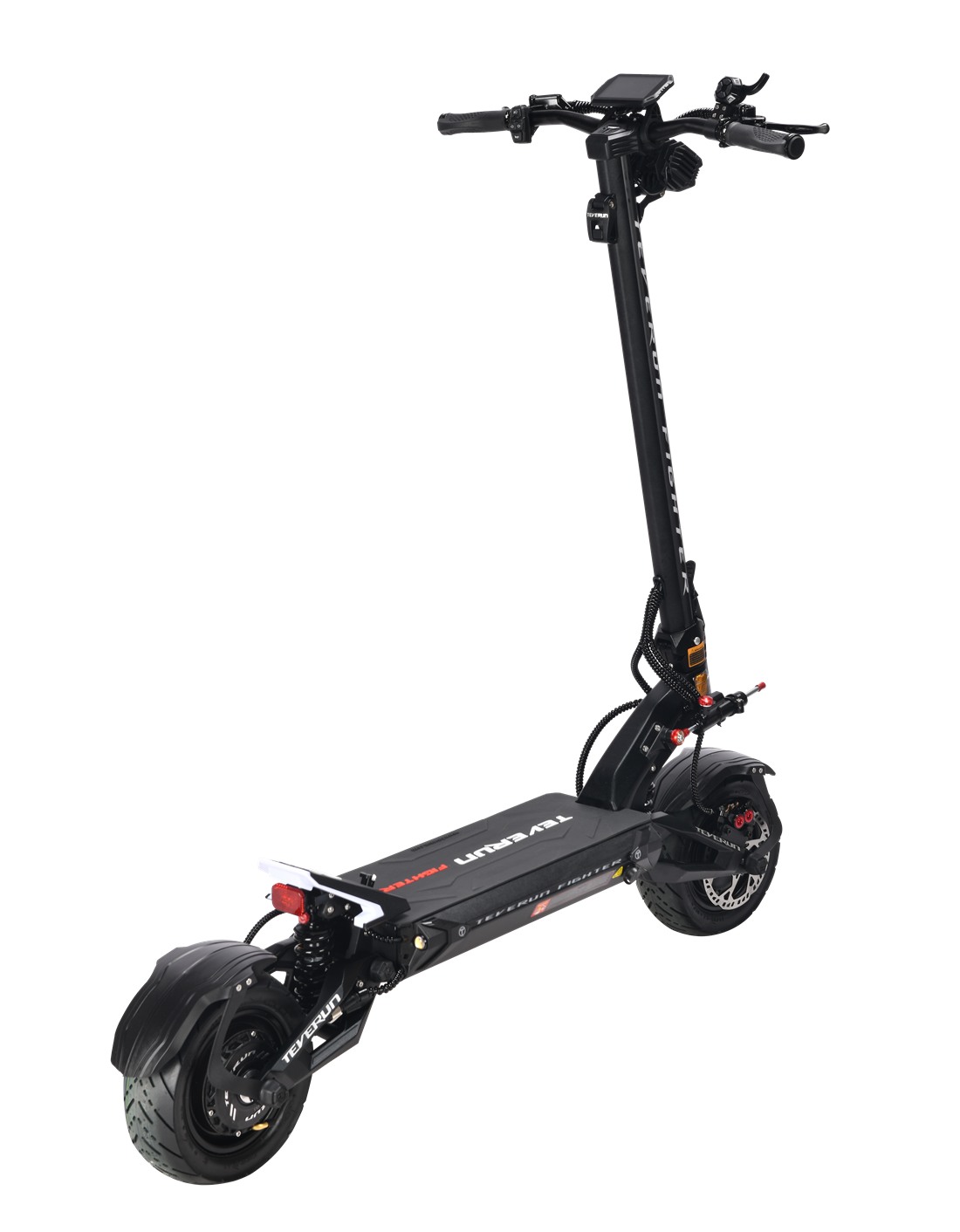 La trottinette électrique Teverun Fighter Eleven Plus représente le sommet de la mobilité urbaine et tout-terrain moderne pour les utilisateurs qui refusent les compromis. Il s’agit d’un modèle haute performance conçu pour des riders exigeants qui recherchent une puissance extrême, une vitesse élevée, une grande autonomie et une sécurité maximale dans un ensemble robuste. Grâce à sa double motorisation composée de deux moteurs brushless de 2 × 1600 W et à une puissance maximale pouvant atteindre 4900 W, elle figure parmi les trottinettes les plus puissantes de sa catégorie. La vitesse maximale atteint jusqu’à 85 km/h, ce qui la classe parmi les trottinettes électriques high-performance, adaptées non seulement à un usage urbain mais aussi aux longs trajets et à une conduite dynamique. Le cœur de la trottinette est une batterie lithium de 60 V, 35 Ah et environ 2100 Wh, offrant une autonomie pouvant aller jusqu’à 120 km avec une seule charge. Ces caractéristiques font de la Fighter Eleven Plus un choix idéal pour un usage quotidien ainsi que pour les sorties du week-end, sans contrainte de recharge fréquente. Malgré sa construction massive et son équipement haut de gamme, la trottinette conserve une excellente maniabilité et une grande stabilité, tandis que sa capacité de charge allant jusqu’à 150 kg permet une conduite confortable même pour les utilisateurs plus lourds ou équipés.